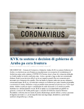 consecuencianan. KvK ta y ta keda den contacto cu Gobierno pa yuda conseha pa proteha