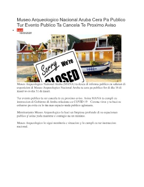 Museo Arqueologico National Aruba (MANA) ta desea di informa publico cu salanan di