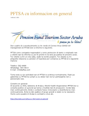 Tuma nota cu tur actividad nan di PFTSA lo continua normalmente. Esaki pa