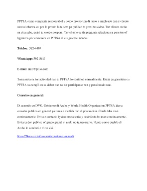 Tuma nota cu tur actividad nan di PFTSA lo continua normalmente. Esaki pa garantisa cu
