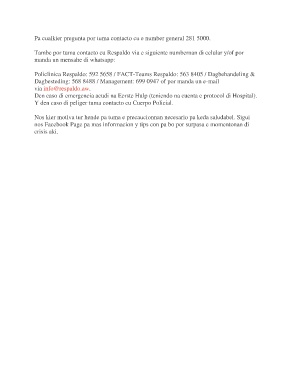 Y den caso di peliger tuma contacto cu Cuerpo Policial.