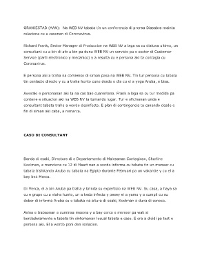 consultant tabata traha a wordo desinfecta. E plan di contingencia ta canando desde e