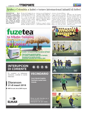 entemente e torneo inter- tremendo wega ta derota e se- Colombia a bini di Jairo Or- ro cu e score di 3 – 0 y asina Diahuebs, dia 15 di maart