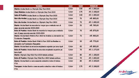 Diario: Aruba Bank cu Olympic Day Run 2023 Color 100 Afl. 1.985,00