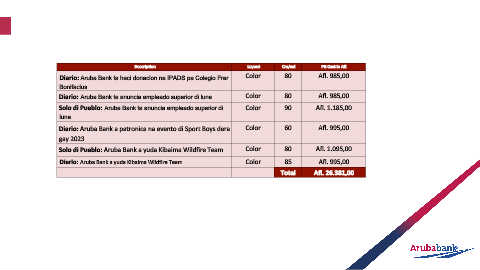 Diario: Aruba Bank ta anuncia empleado superior di luna Color 80 Afl. 985,00