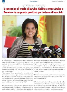 RIBA e hecho cu siman pasa a tuma luga e vuelo inau- importante, no solamente pa aumenta e trafico di turista