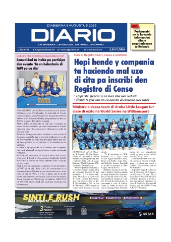 embronan di FAVI ta riba cayanan bendiendo tickets, Beatrix pa asina participa den Little League Baseball a nace. Ministro Gerlien Croes tam-