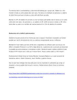 extra den nan saco. Un persona cu un salario di Afl. 5490 pa luna lo keda cu Afl. 425,-