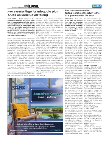 VID testing in advance of the upcoming ing. Aruba’s plan is to have all tourist de- travelers present a nega- results. • M e d C a r e