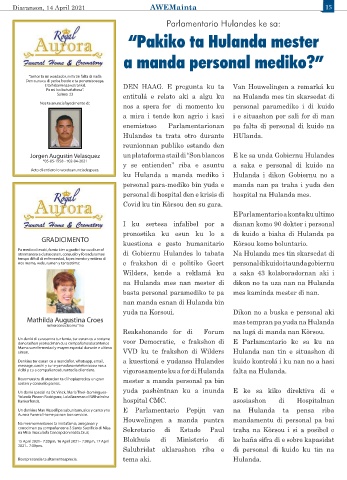 nos mama, wela, ruman y tantastima: e frakshon di e politiko Geert personal di kuido i ta unda gobiernu