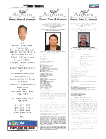 鞠躬。 Acto di entiero lo tuma lugar na misa Santa Filomena na Acto di condolencia y despedida lo tuma lugar diabierna, 16