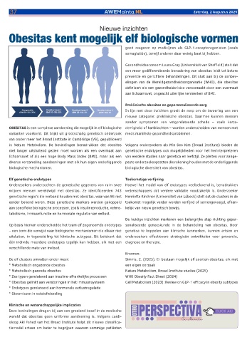 * Obesitas gelinkt aan verstoringen in het immuunsysteem Cell Metabolism (2023): Review on GLP-1 efficacy in obesity subtypes