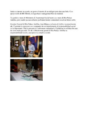 Gerente General di Riu Palace Antillas, Juan Blanco, ta honra di ricibi e reconocimento