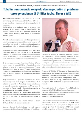 banconan y Utilities Aruba, WEB Aruba N.V. y Elmar. p’esaki core peliger, ir. Richard G. Eman a conclui.