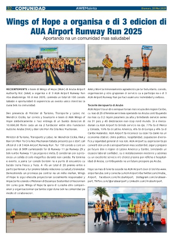 of Hope lo sigui ehecuta proyectonan socialmente responsabel y  Airport,  Facebook.com/ArubaAirport,  Instagram.com/arubaair-
