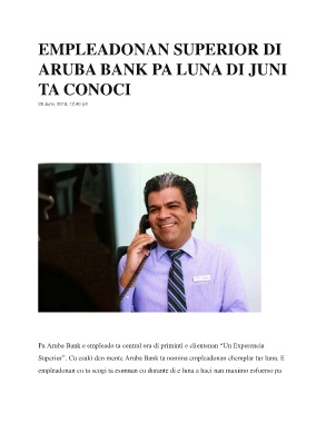 Superior”. Cu esaki den mente Aruba Bank ta nomina empleadonan ehemplar tur luna. E