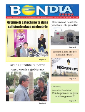 Diasabra 12 di Augustus 2017 www.bondia.com Email: noticia@bondia.com Tel: 582-7800 Fax: 582-7044 1,50 Florin