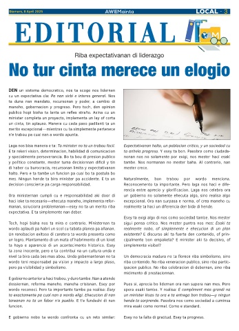 cu un expectativa cla: Pa nan sirbi e interes general. Nos
