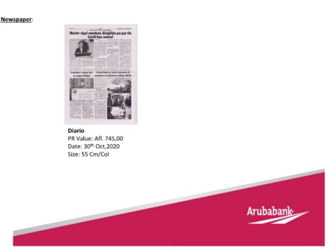 Newspaper: Diario PR Value: Afl. 745,00 th Date: 30 Oct,2020 Size: 55 Cm/Col