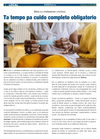 NA Aruba, e cantidad di habitante nan mas grandi ta creci- cu colaboracion cu fisioterapista, trahado social y hasta