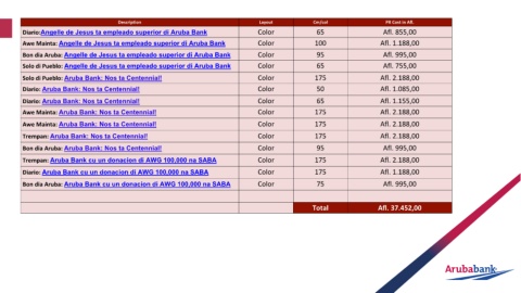 Diario: Aruba Bank: Nos ta Centennial! Color 65 Afl. 1.155,00