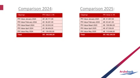 PR Value May 2024 Afl. 139.030,00 PR Value May 2025 Afl. 110.648,00
