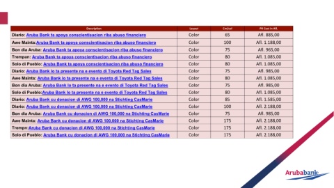 Diario: Aruba Bank lo ta presente na e evento di Toyota Red Tag Sales Color 75 Afl. 985,00