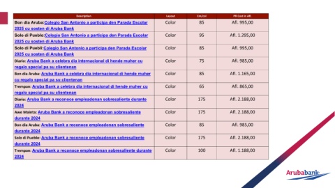 Solo di Pueblo: Aruba Bank a reconoce empleadonan sobresaliente Color 175 Afl. 2.188,00