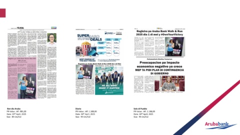 Bon dia Aruba Diario Solo di Pueblo PR Value : Afl. 985,00 PR Value : Afl. 1.188,00 PR Value : Afl. 1.188,00 Date: 29 April, 2025 Date: 30 April, 2025 Date: 30 April, 2025 th th th Size: 85 Cm/Col Size: 95 Cm/Col Size: 95 Cm/Col