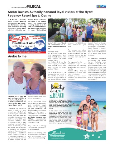 the Minister of Tourism as Aruba’s year-round sunny vorite vacation destination