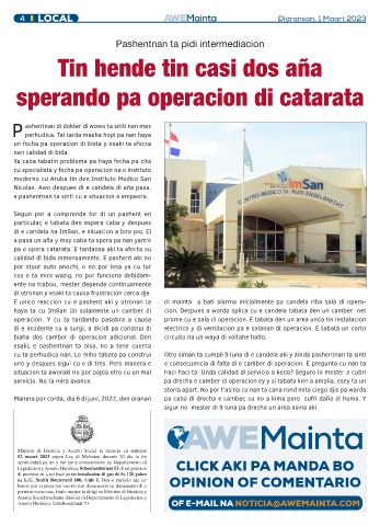 operacion. Y cu ta tardando pasobra a causa prome cu e sala di operacion. E tabata den un area unda tin instalacion