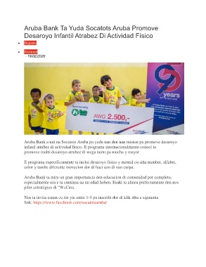 Aruba Bank a uni na Socatots Aruba pa yuda nan den nan mision pa promove desaroyo