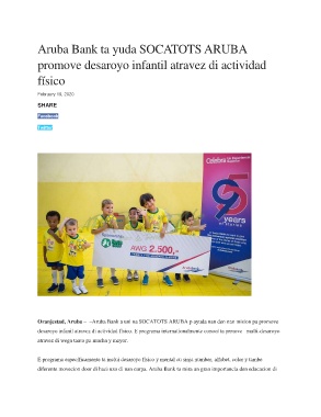 Aruba Bank ta yuda SOCATOTS ARUBA