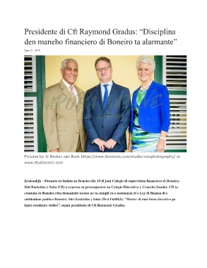 Kralendijk – Durante su bishita na Boneiro dia 19 di juni Colegio di supervision financiero di Boneiro,