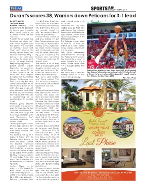 Durant's scores 38, Warriors down Pelicans for 3-1 lead