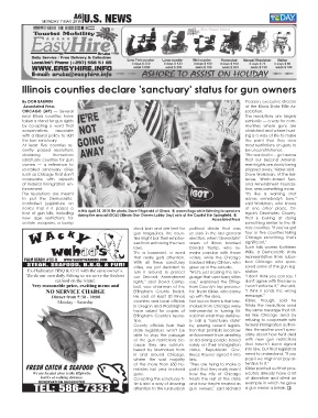 host of gun bills, including In this April 25, 2018 file photo, Dave Fitzgerald of Girard, Ill. waves flags while listening to speakers egon's Deschutes County,