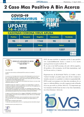 DVG via nan website ta anuncia cu tin 2 caso positivo