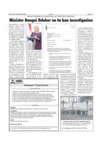 AVP a cuestiona Minister Parlamento y a referi na