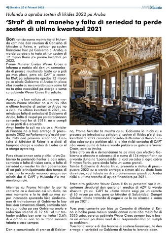 minda dor di CAFT y Hulanda n’e mo- ricibi e ultimo tranche di ayudo financiero pa 2021.