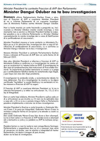 nuando cu Minister Oduber mester wordo investiga, y mes