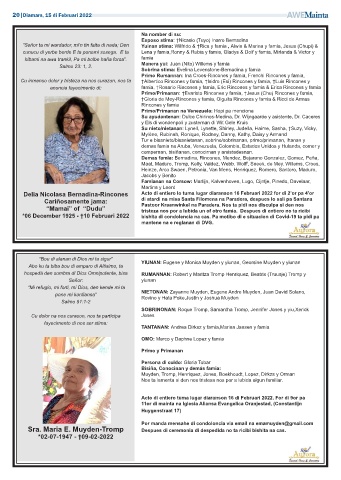 Delia Nicolasa Bernadina-Rincones Acto di entiero lo tuma lugar diaranson 16 Februari 2022 for di 2’or pa 4’or