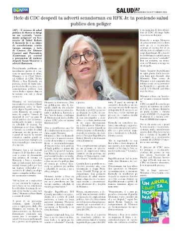 Hefe di CDC despedi ta adverti senadornan cu RFK Jr. ta poniendo salud