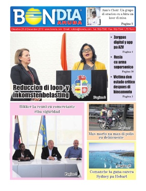 Diasabra 28 di December 2019 www.bondia.com Email: noticia@bondia.com Tel: 582-7800 Fax: 582-7044 1,75 Florin
