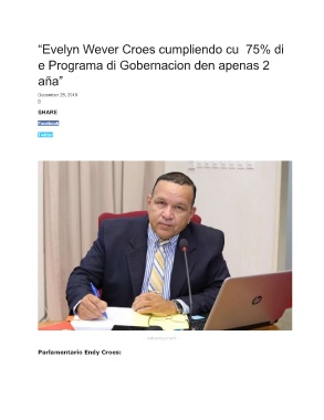 “Evelyn Wever Croes cumpliendo cu 75% di e Programa di Gobernacion den apenas 2 aña” December 28, 2019 0 SHARE Facebook Twitter - Advertisement - Parlamentario Endy Croes: