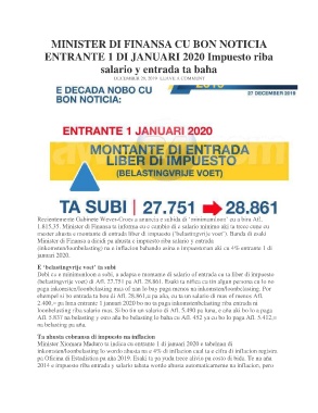 Debi cu e minimunloon a subi, a adapta e montante di salario of entrada cu ta liber di impuesto