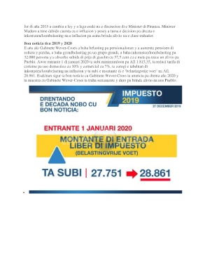 inkomsten/loonbelasting na inflacion y ta subi e montante di e ‘belastingvrije voet’ na Afl.