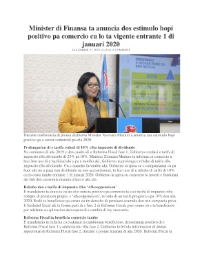 aspectonan di Reforma Fiscal fase 2, durante e prome lunanan di aña 2020. Reforma Fiscal ta