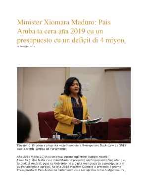 Minister di Finansa a presenta recientemente e Presupuesto Supletorio pa 2019
