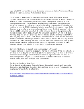 y pa aña 2019 tambe Gobierno a demostra e mesun diciplina financiero di keda