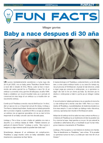 embryo cu a wordo crea y gevries 30 aña pasa, na aña 1994. algun dia nan lo tin un chens pa bida. Su decision pa no